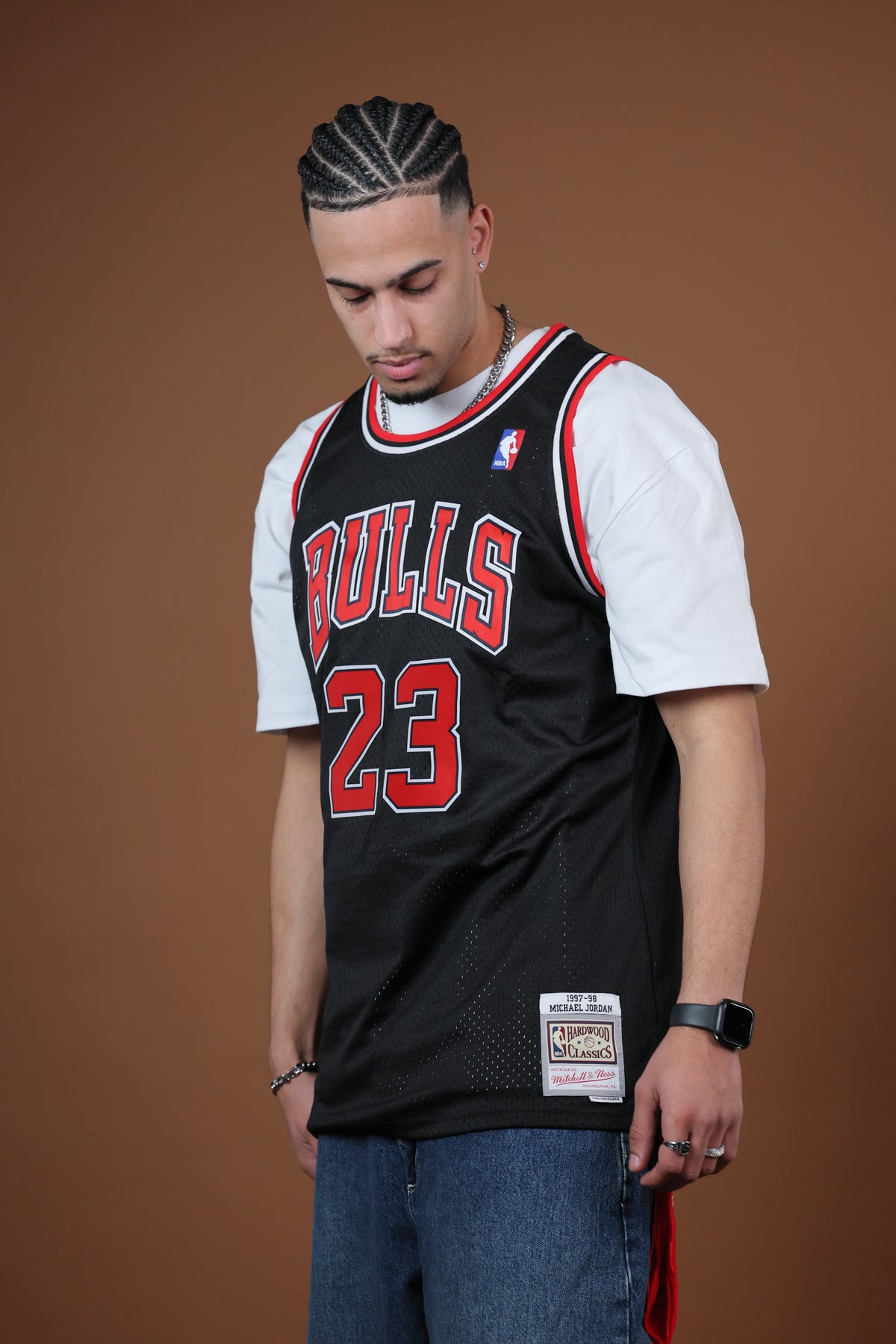 גופיית רטרו אייקונית של מייקל ג’ורדן משיקגו בולס, בצבע שחור קלאסי עם הספרה 23 – מחווה לעונת 1997/98 האגדית. עיצוב על-זמני שמשלב בין מראה משחק היסטורי לסטייל רחוב חזק, כזה שלא צריך להסביר מי לובש אותו.