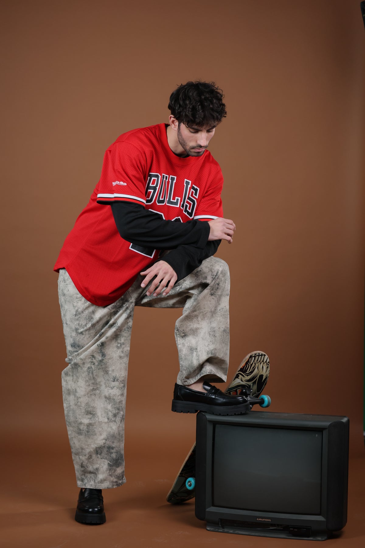 חולצת רטרו אייקונית בהשראת אחד הדגמים המזוהים ביותר עם עולם הכדורסל. הצבע האדום הקלאסי של שיקגו בולס, הכיתוב BULLS בחזית והמספר 23 יוצרים מראה על־זמני שמשלב בין מורשת NBA לסטייל רחוב עכשווי. פריט חובה לכל אוהד כדורסל ולכל מי שמחפש לוק חזק עם נוכחות.